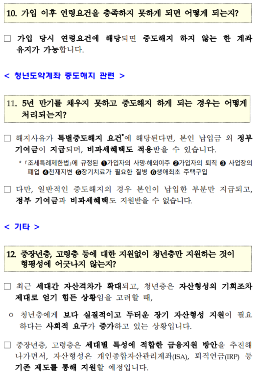 청년도약계좌 주요 문의사항
