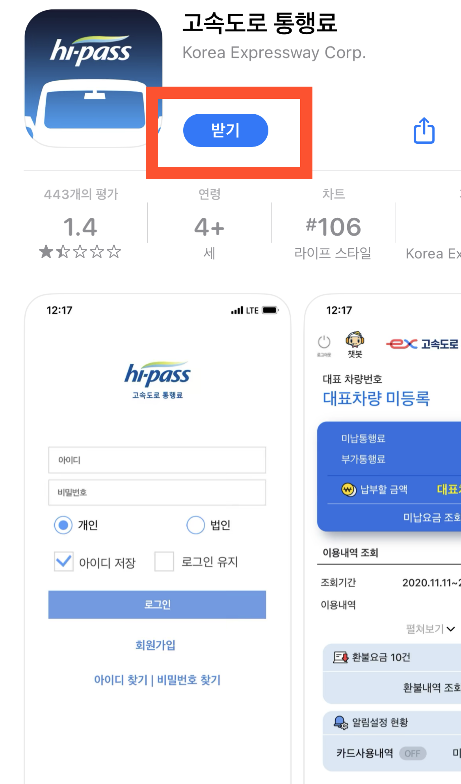 아래와 같이 고속도로 통행료 앱을 통해서도 미납요금 납부가 가능합니다. PC에서 진행하시는 것과 동일한 절차에 따라 미납요금을 조회하고 납부하실 수 있습니다.